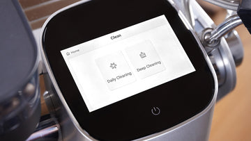 The machine has an in-built burr grinder, which offers 3 preset dosing modes (weight-based, time-based, manual) and 8 adjustable speeds to tailor grind size for espresso, drip, or pour-over. The machine’s integrated scales allows the user to monitor the weight of the espresso shot in real time.