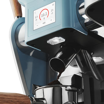 The machine has an in-built burr grinder, which offers 3 preset dosing modes (weight-based, time-based, manual) and 8 adjustable speeds to tailor grind size for espresso, drip, or pour-over. The machine’s integrated scales allows the user to monitor the weight of the espresso shot in real time.